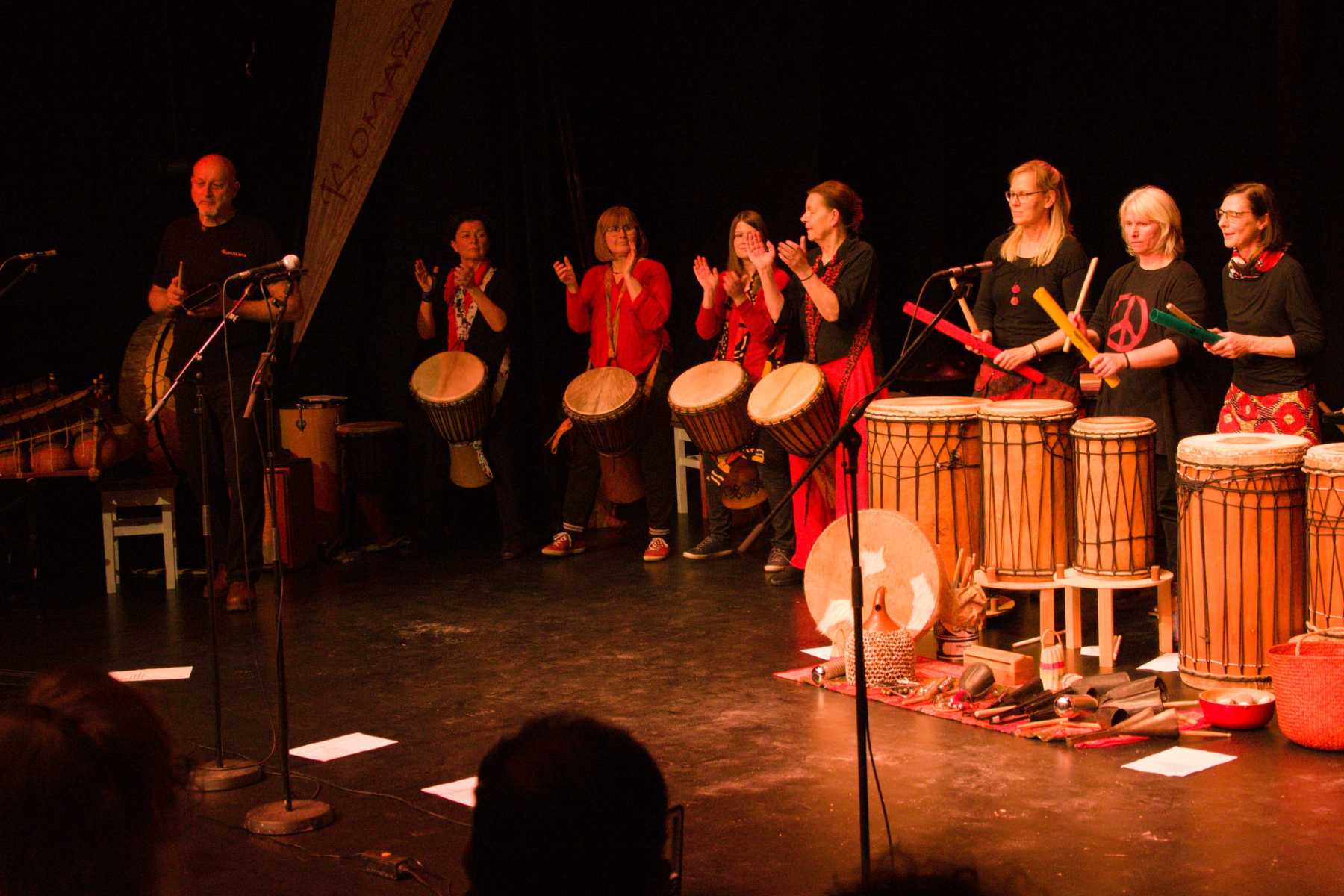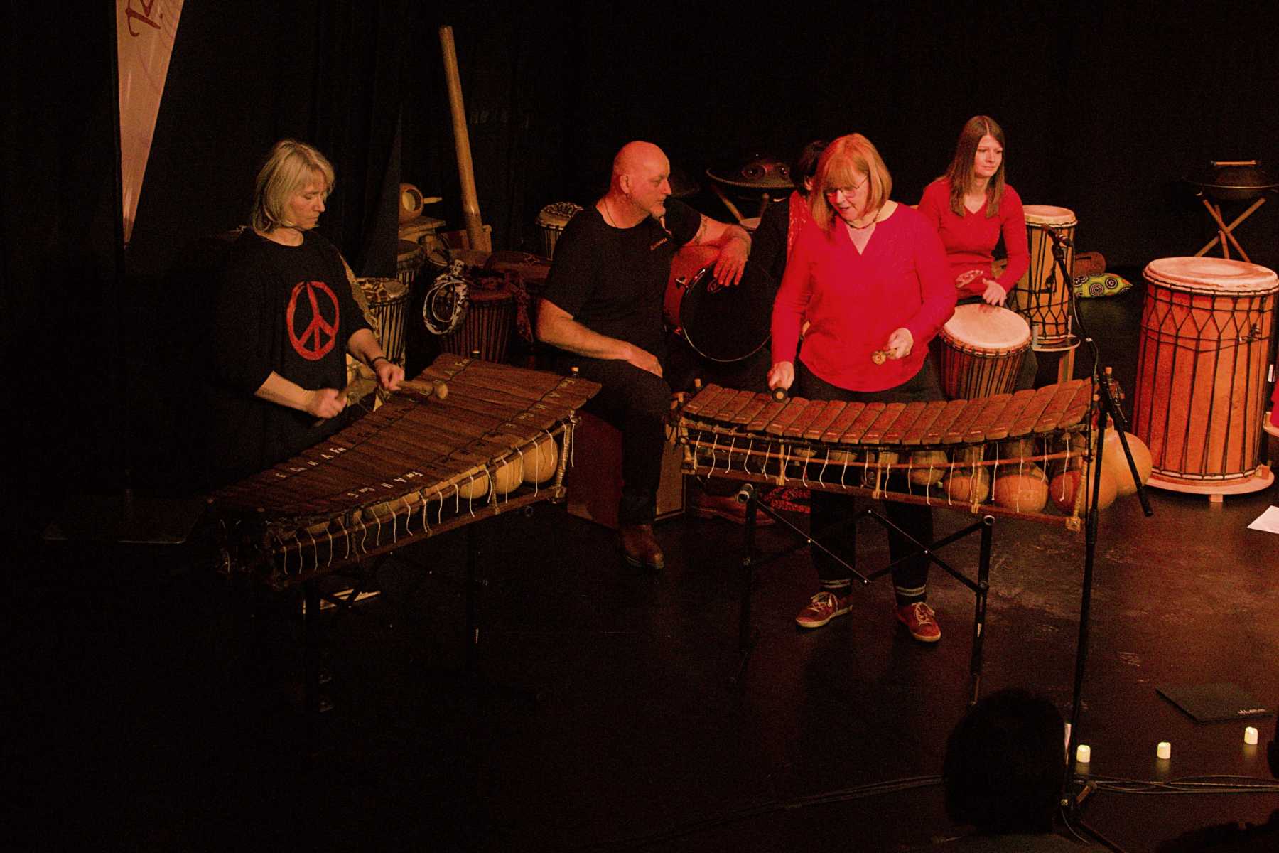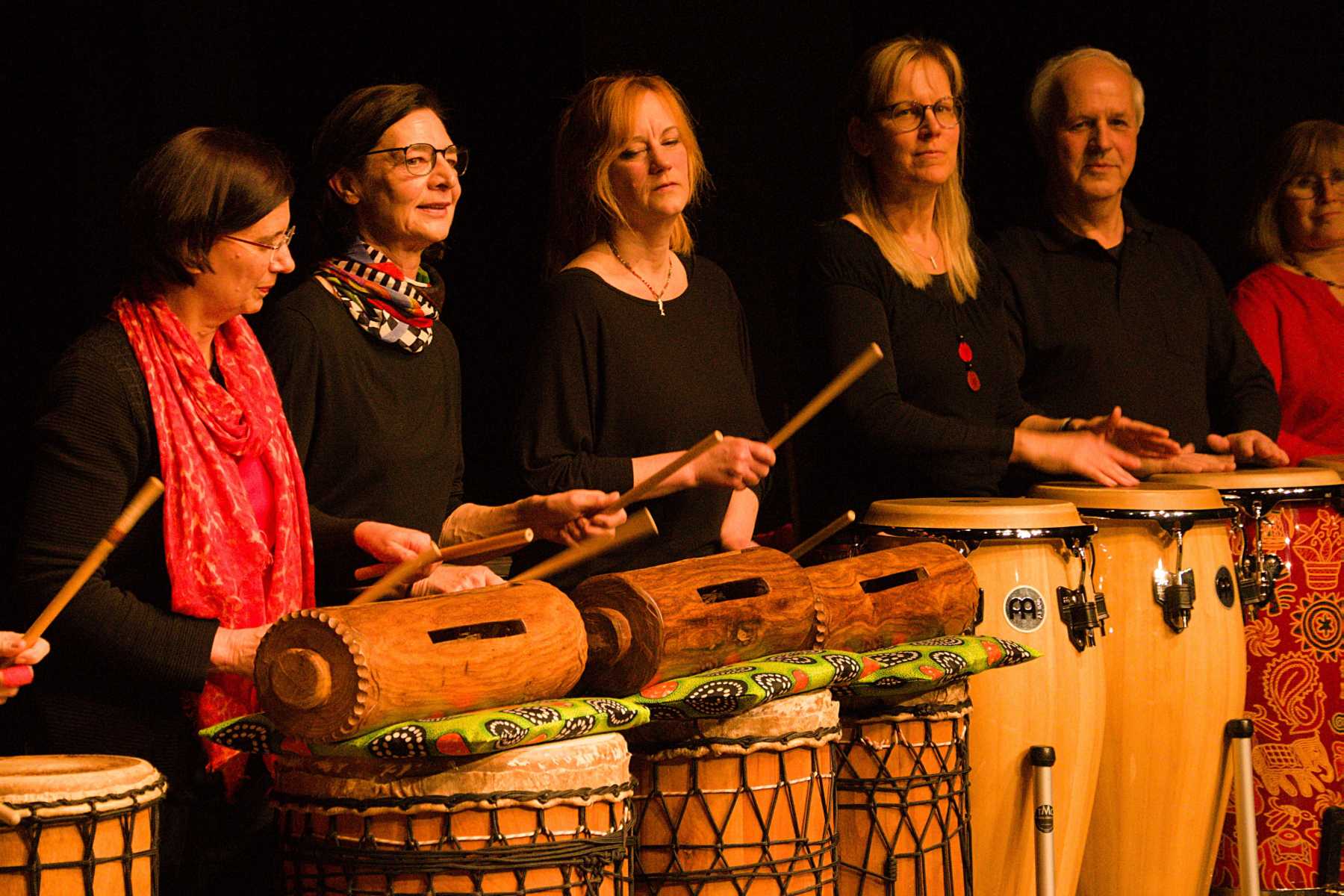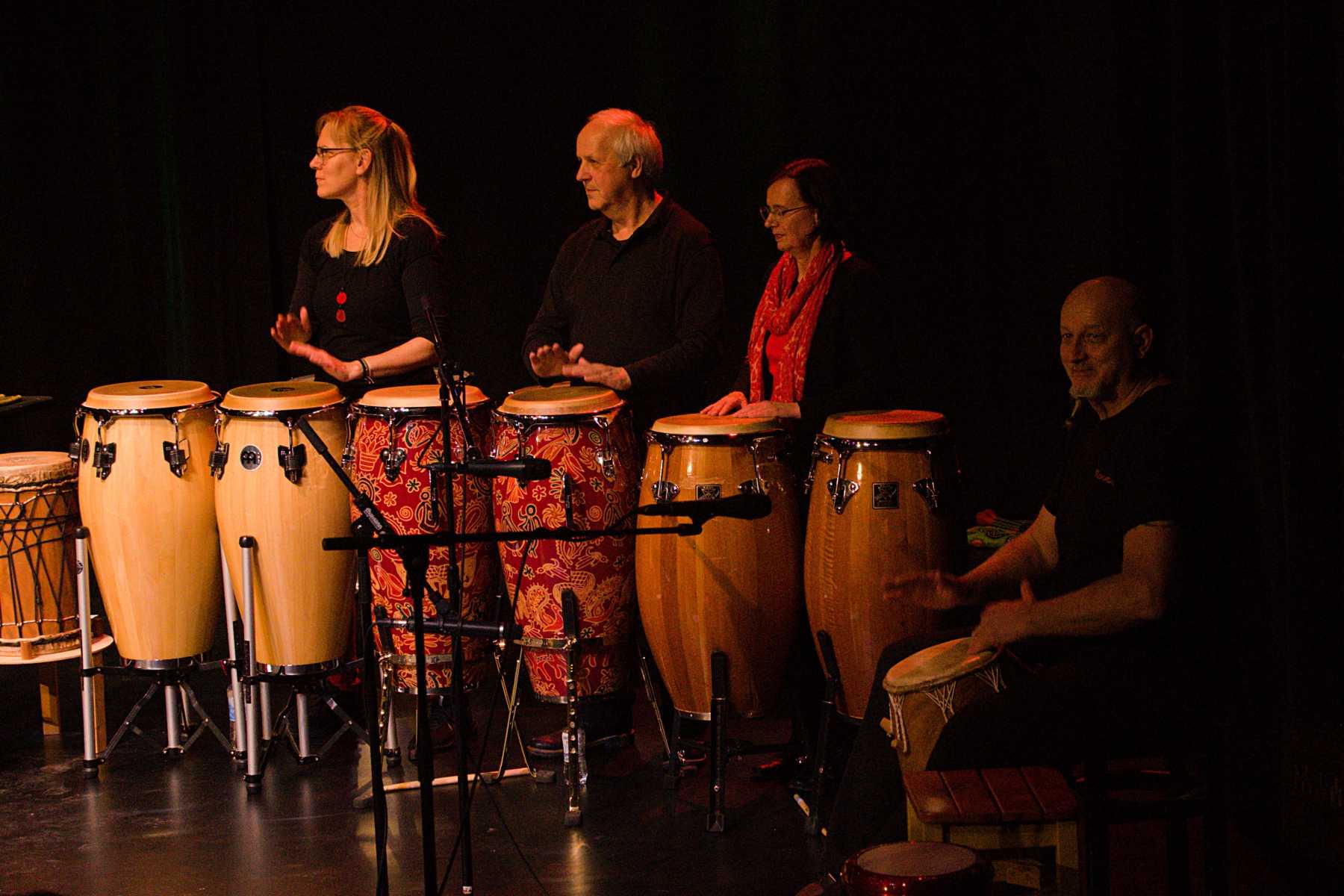 Die Augsburger Percussiongruppe Komazama verbindet den erdigen Sound afrikanischer Rhythmen mit luftigen Latingrooves. Basstrommeln, Kleinpercussion, Congas, Djemben und Glocken liefern sich ein spannendes Wechselspiel. Lieder und außergewöhnliche Instrumente entführen das Publikum in Klangwelten aus verschiedenen Kulturkreisen. Gelegenheit, mit allen Sinnen zu genießen.