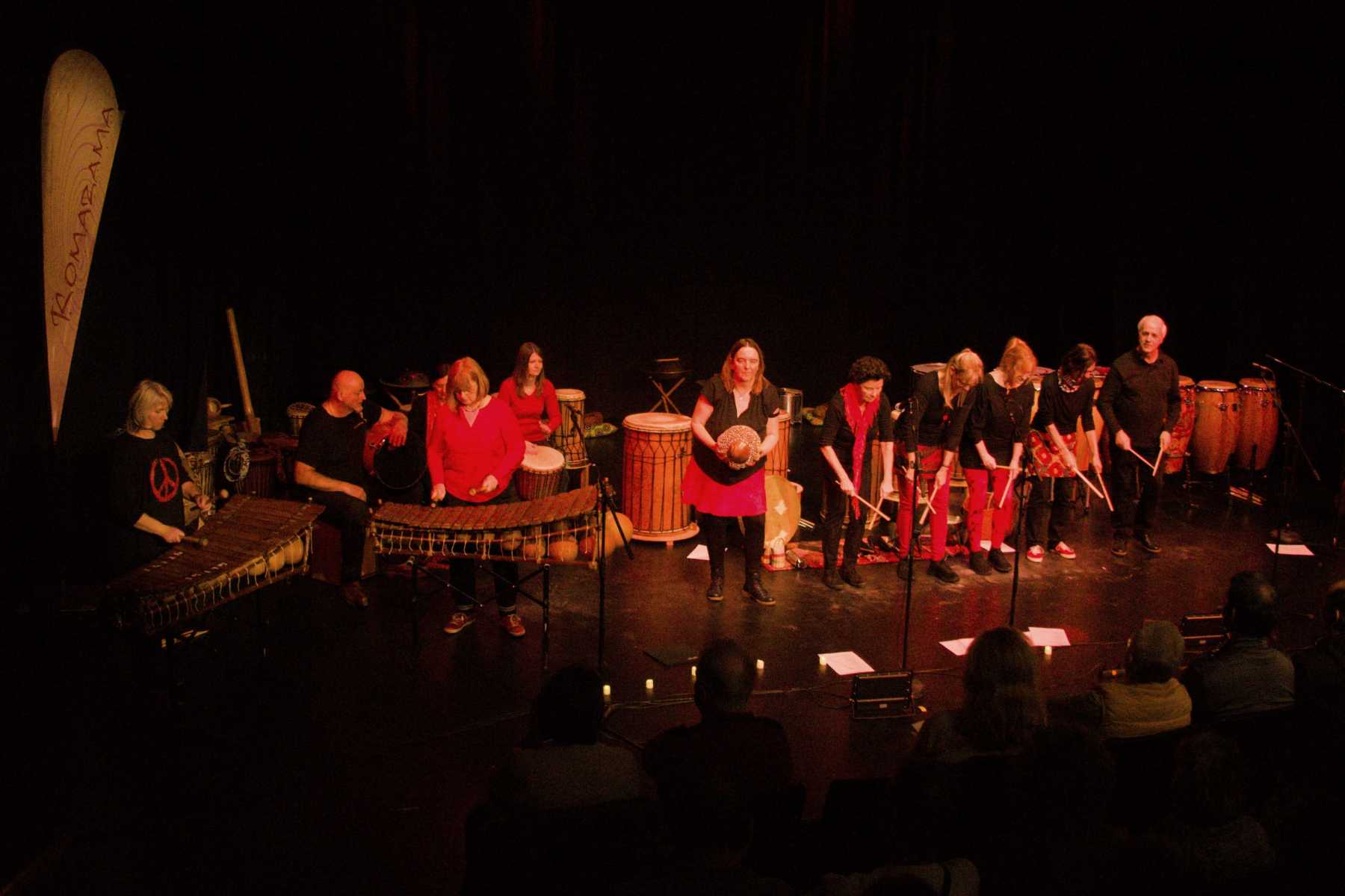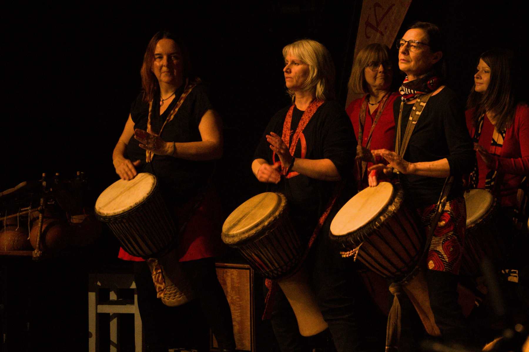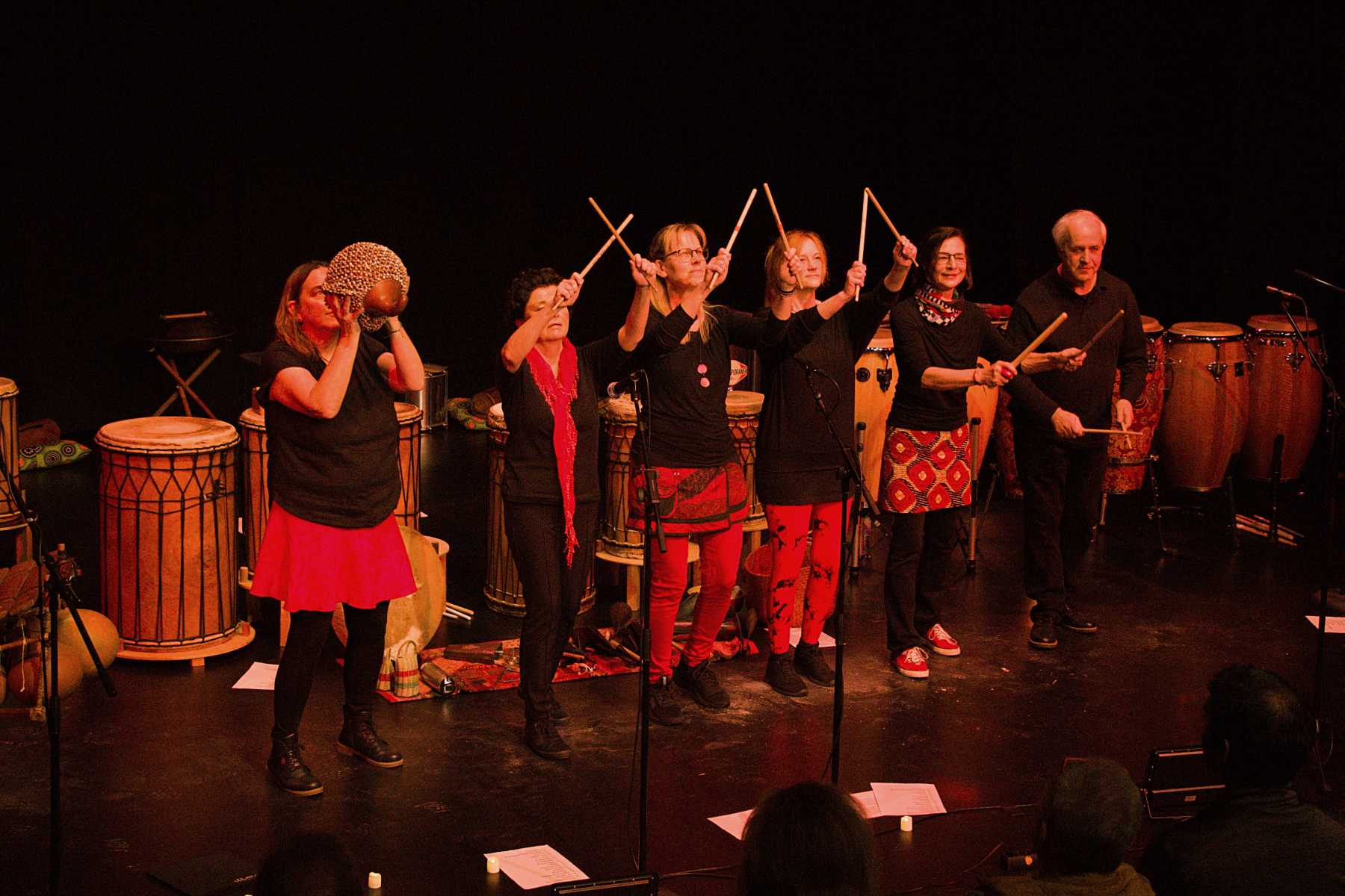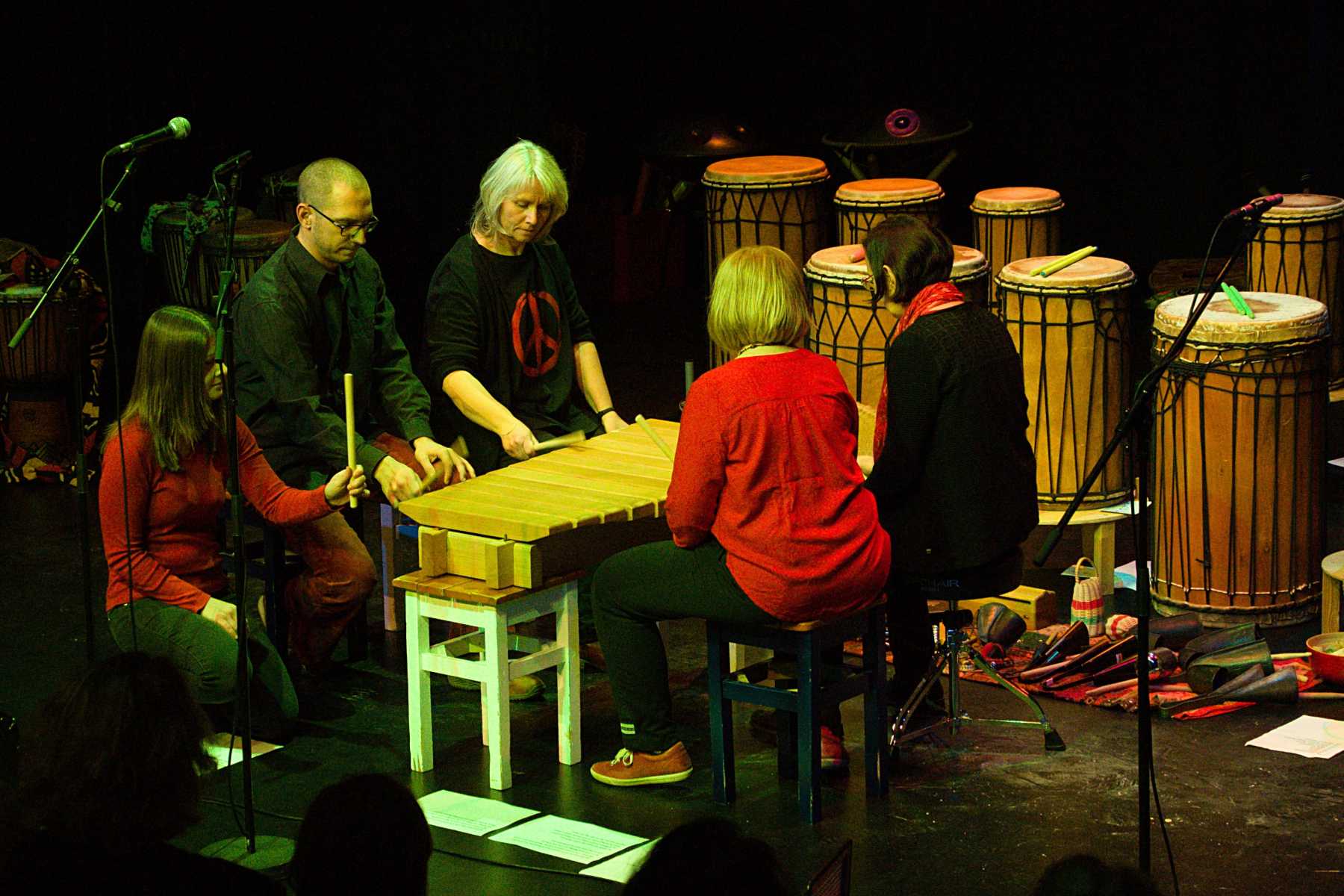 Die Augsburger Percussiongruppe Komazama verbindet den erdigen Sound afrikanischer Rhythmen mit luftigen Latingrooves. Basstrommeln, Kleinpercussion, Congas, Djemben und Glocken liefern sich ein spannendes Wechselspiel. Lieder und außergewöhnliche Instrumente entführen das Publikum in Klangwelten aus verschiedenen Kulturkreisen. Gelegenheit, mit allen Sinnen zu genießen.