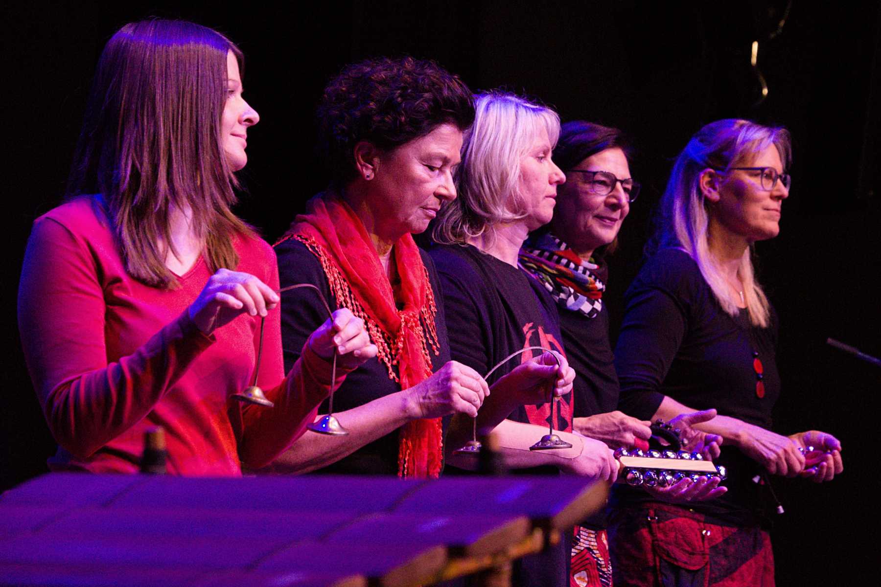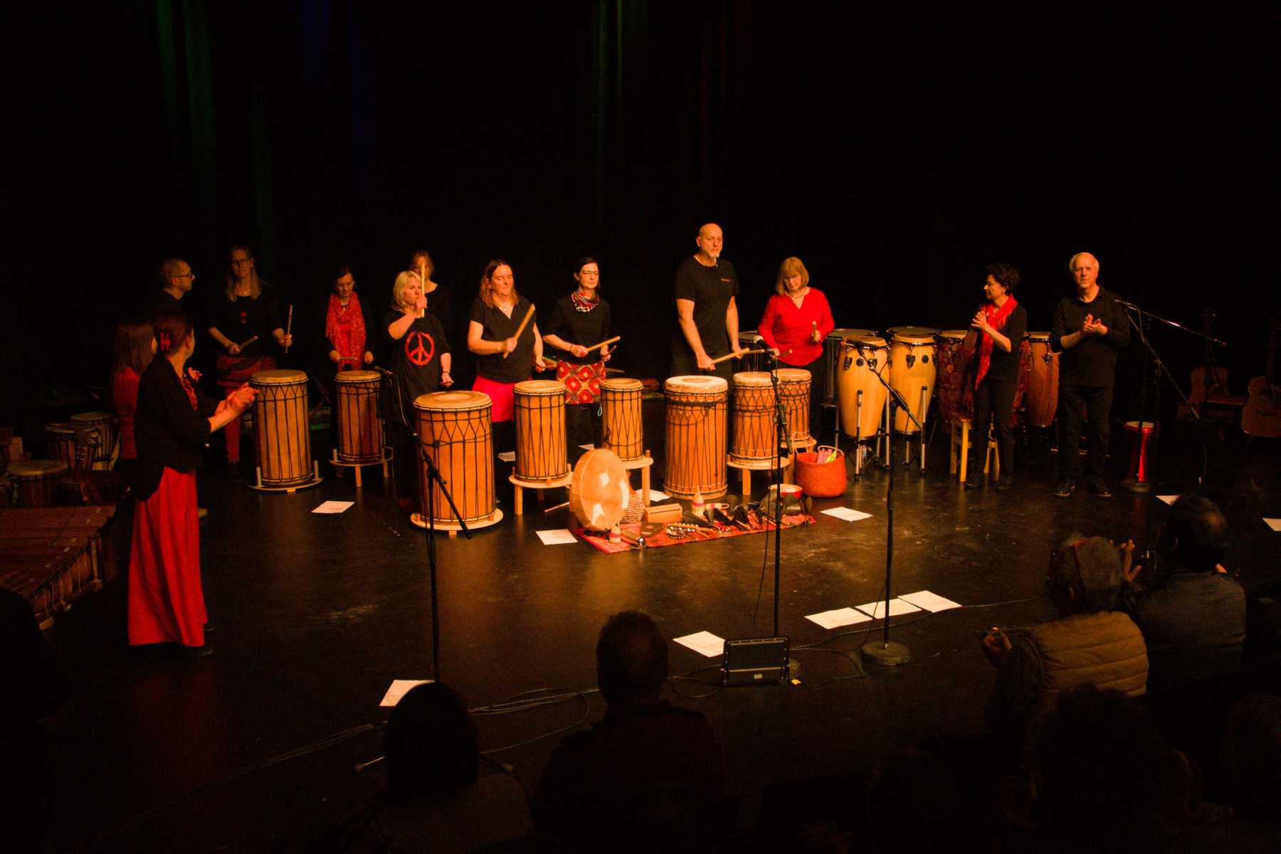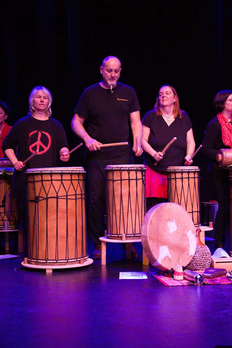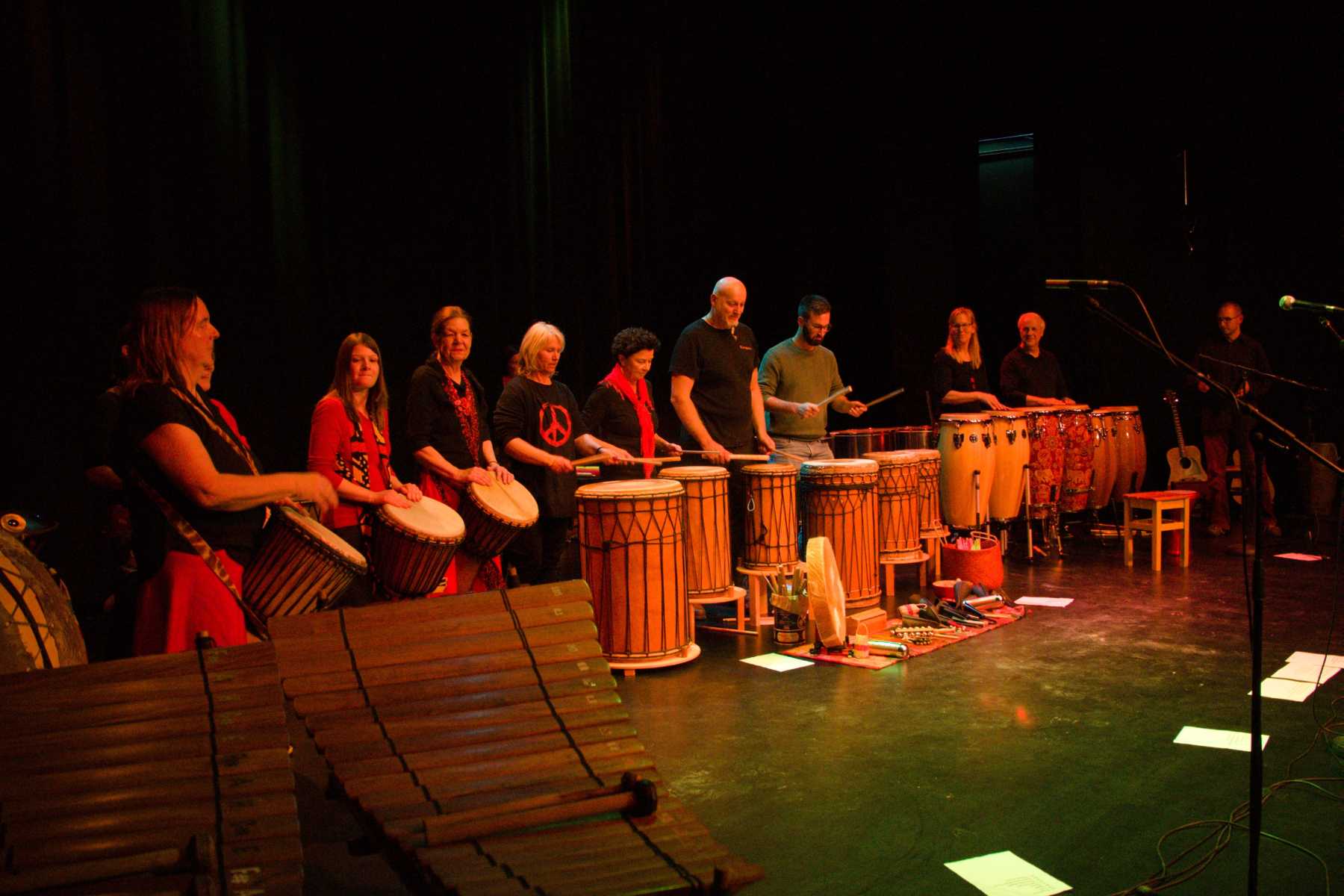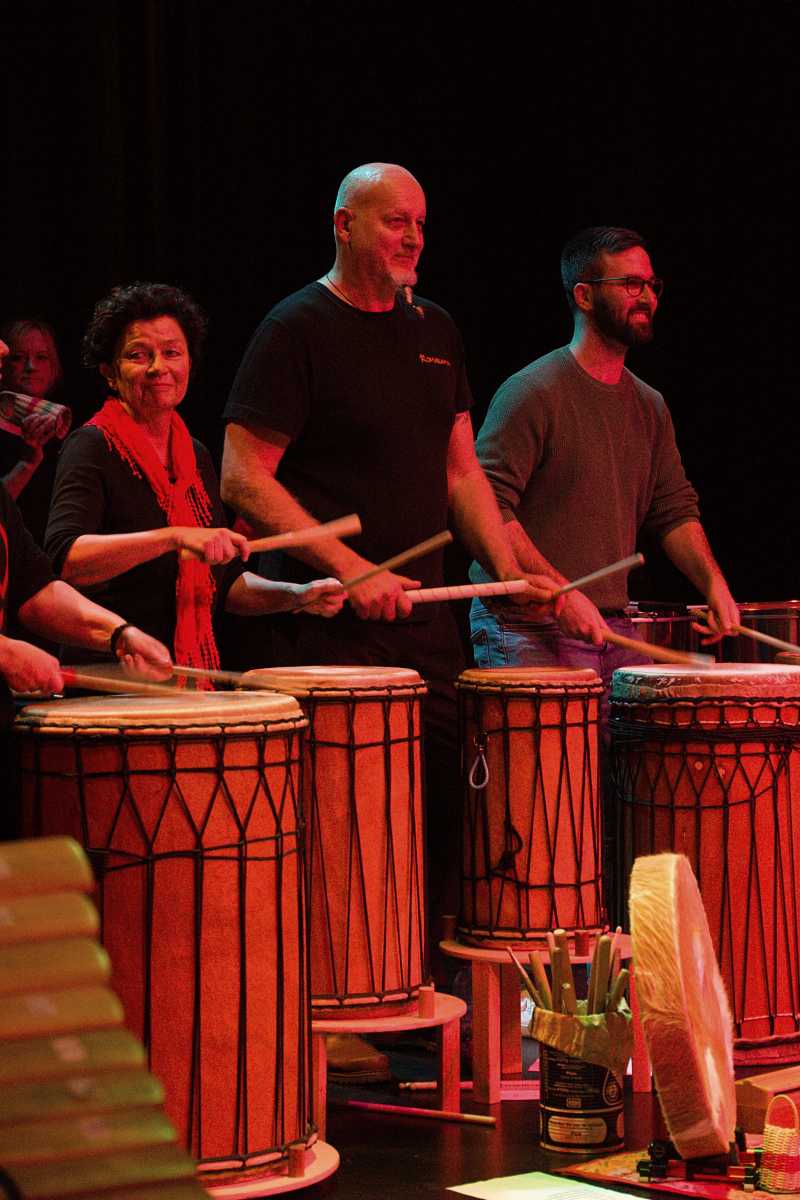 Die Augsburger Percussiongruppe Komazama verbindet den erdigen Sound afrikanischer Rhythmen mit luftigen Latingrooves. Basstrommeln, Kleinpercussion, Congas, Djemben und Glocken liefern sich ein spannendes Wechselspiel. Lieder und außergewöhnliche Instrumente entführen das Publikum in Klangwelten aus verschiedenen Kulturkreisen. Gelegenheit, mit allen Sinnen zu genießen.